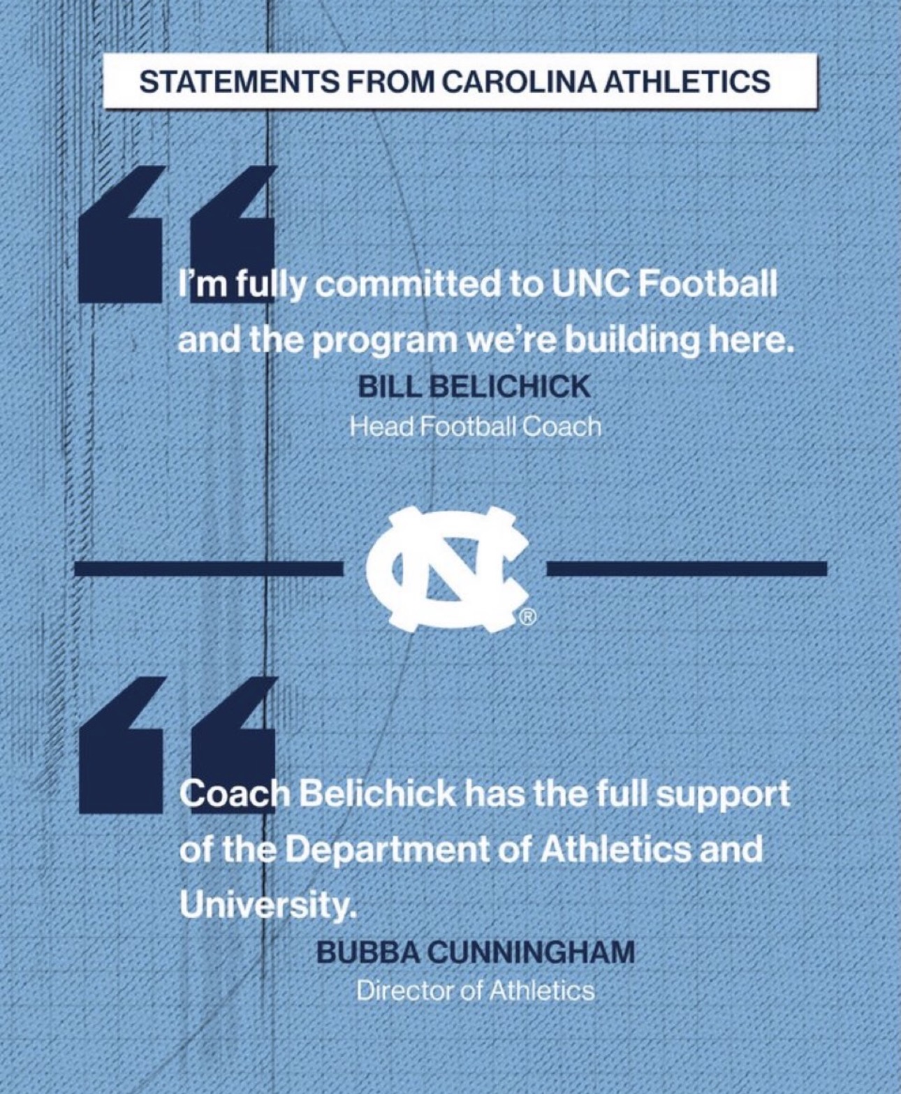Both North Carolina and Bill Belichick released statements reaffirming their commitments to one another late Wednesday evening, but in this era of college football, things can change quickly, especially if the results don’t change quickly.